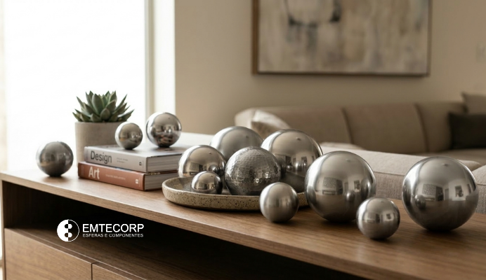 Dentro das esferas de metal, o aço inoxidável se destaca como o material mais buscado, pela combinação de visual moderno e resistência à corrosão.